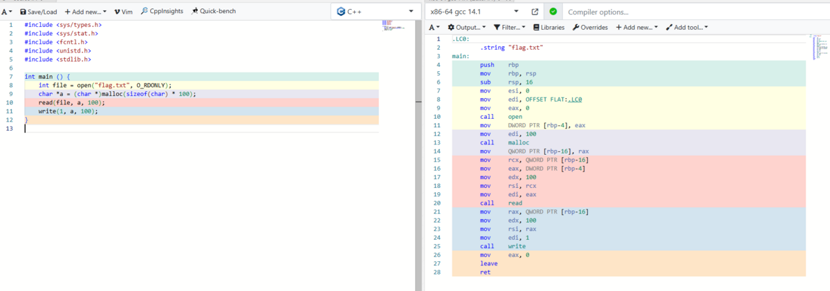 え?アセンブリを読めって?嫌だよ面倒くさい()